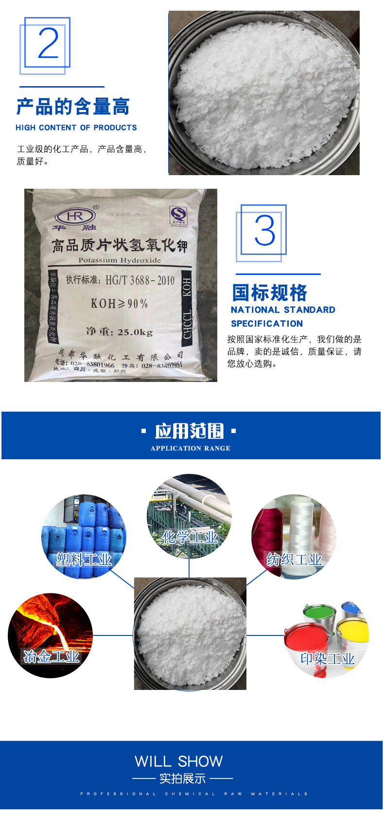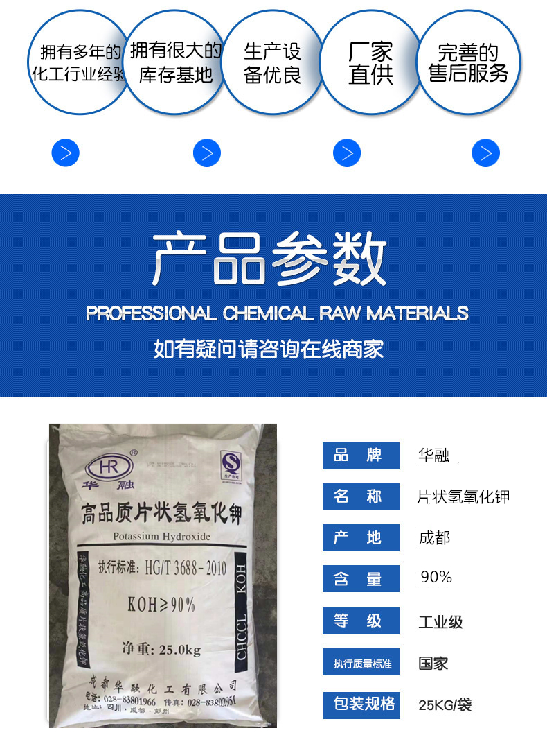 氫氧化鉀可以通過多種方法制備,以下是其中幾種常見的制備方法:1. 電解法:將鉀鹽溶液(如氯化鉀溶液)放在電解池中,兩個電極之間加電流,鉀離子被還原為鉀金屬,并在水中形成氫氣,從而在陽極和陰極處生成氧化鉀和氫氧化鉀溶液,再用蒸餾法或結晶法分離氫氧化鉀和氧化鉀。2. 碳酸鉀燒結法:將碳酸鉀粉末燒結高溫,生成氧化鉀和二氧化碳,然后將氧化鉀與水反應生成氫氧化鉀。3. 氯化鉀電解法:將氯化鉀放入電解池中,陽極反應生成氯氣,陰極反應生成氫氣和氫氧化鉀溶液,通過蒸餾或結晶法分離氫氧化鉀和氯化鉀。4. 硫酸鉀電解法:將硫酸鉀放入電解池中,進行電解反應,產生氧氣、氫氣和氫氧化鉀溶液,通過蒸餾或結晶法分離氫氧化鉀和硫酸鉀。5. 重碳酸鉀水解法:將重碳酸鉀加入水中,重碳酸鉀水解生成氫氧化鉀和碳酸二氫鉀,后者可以通過加熱分解獲得氫氧化鉀。需要注意的是,氫氧化鉀制備過程中需要注意,嚴格控制反應條件和工藝參數,確保產品質量和穩定性。